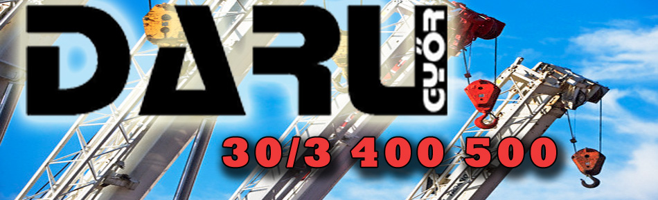Így egy új fiatal, dinamikus fejlődő gazdasági társaság áll megrendelőink rendelkezésére. Daruzási feladatok elvégzésére Sopron, Zalaegerszeg, Szombathely, Sárvár, Vasvár, Kapuvár, Beled, Répcelak, Csorna, Fertőd, Fertőszentmiklós, Pápa, Celldömölk, Ajka, Veszprém, Mosonmagyaróvár, Rajka, Komárom, Jánossomorja, Dunakiliti, Tata, Tatabánya, Esztergom, Oroszlány, Lábatlan, Hegyeshalom, Pannonhalma, Bicske, Kisbér, Tét, Győr településekre, és vonzás körzetükre is vállaljuk a kitelepülést.